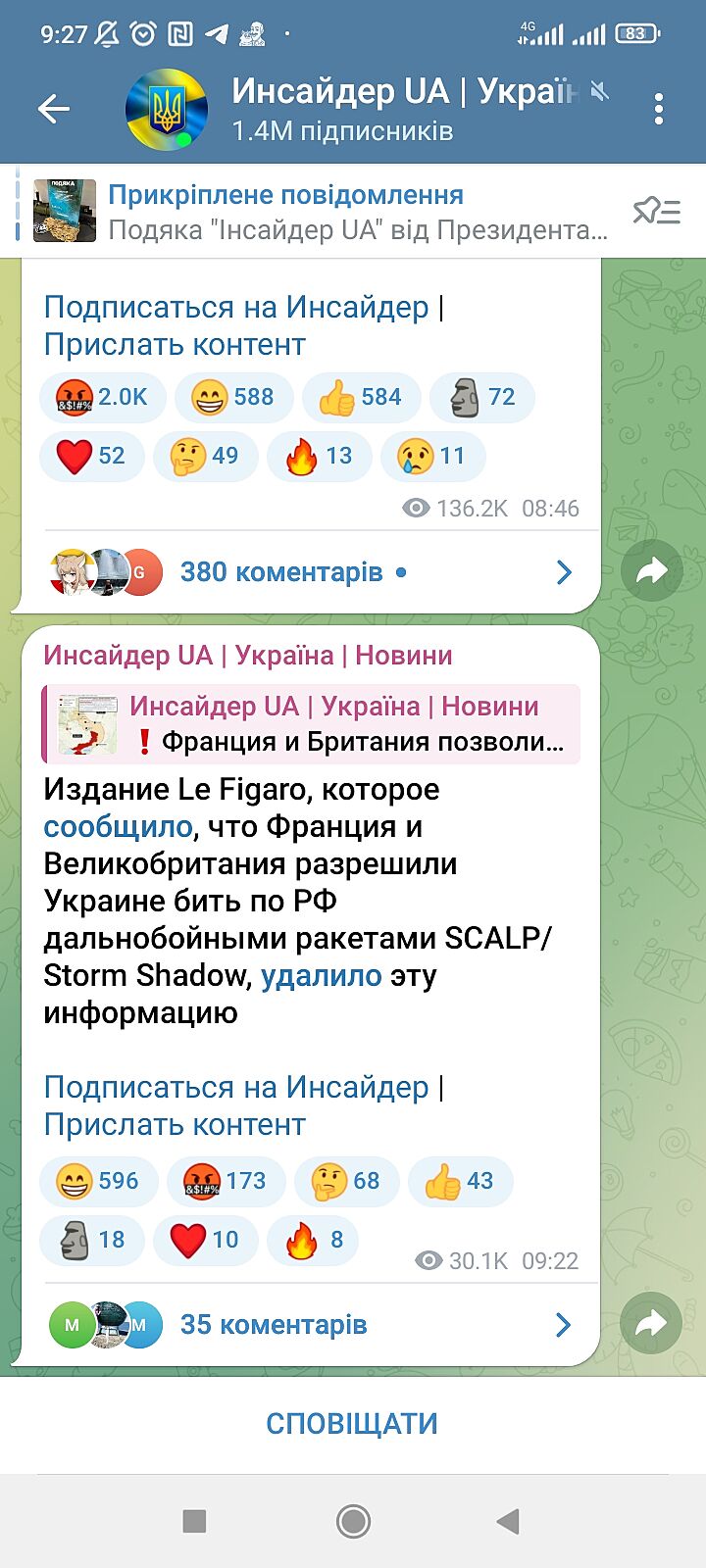 Газета, которая вчера сообщала о разрешении Франции и Британии бить своими дальнобойными ракетами, удалила эту информацию.