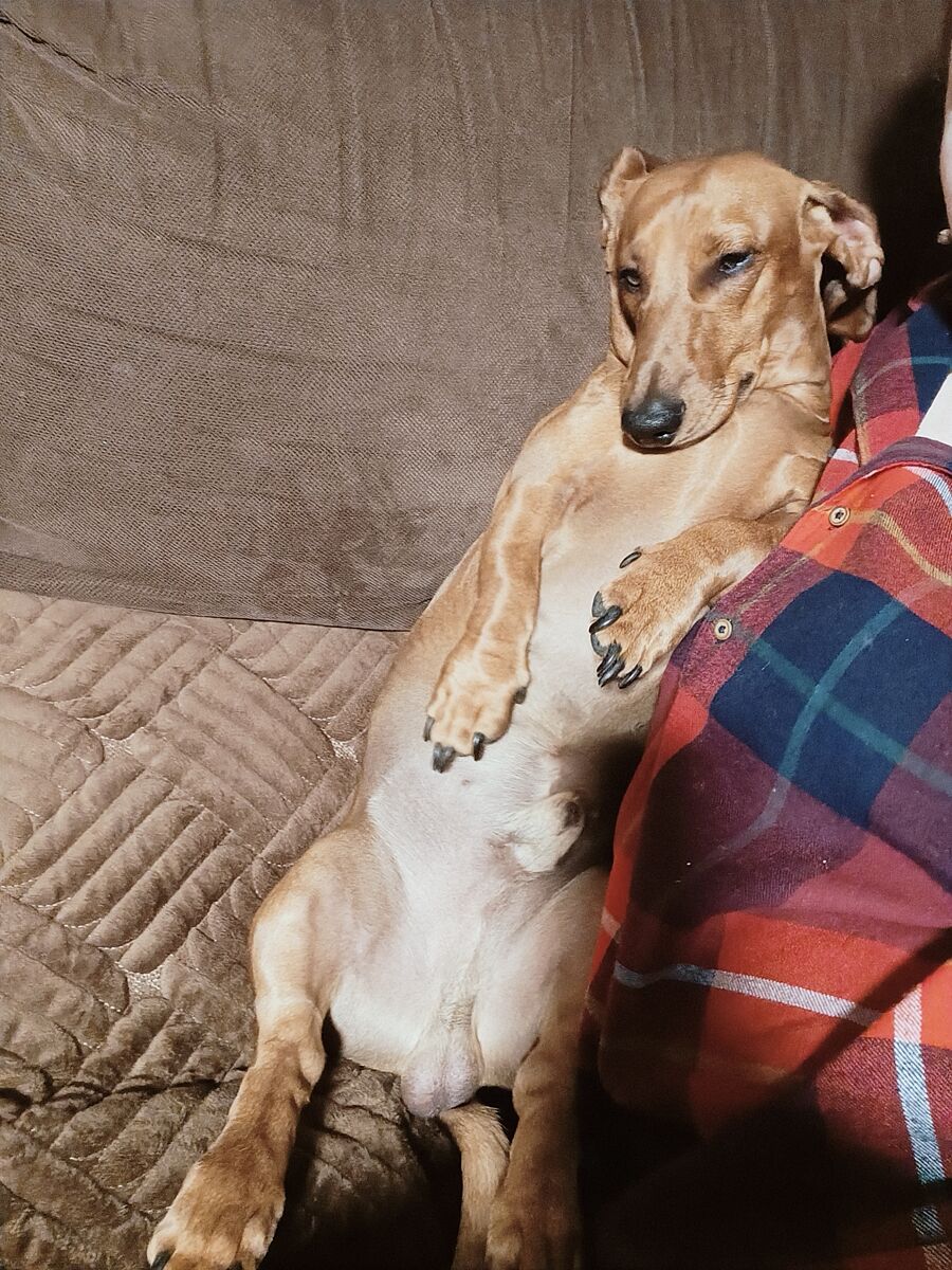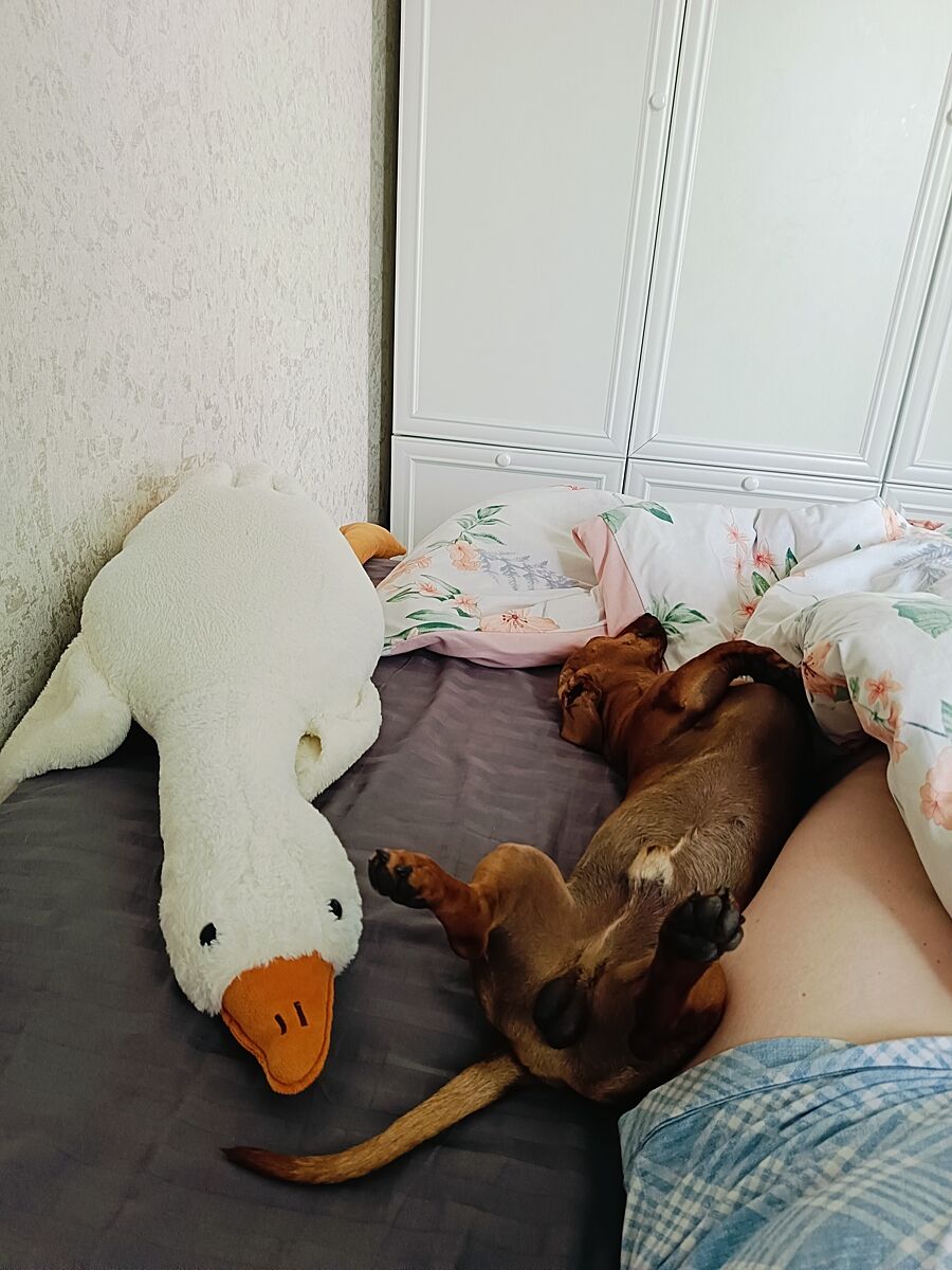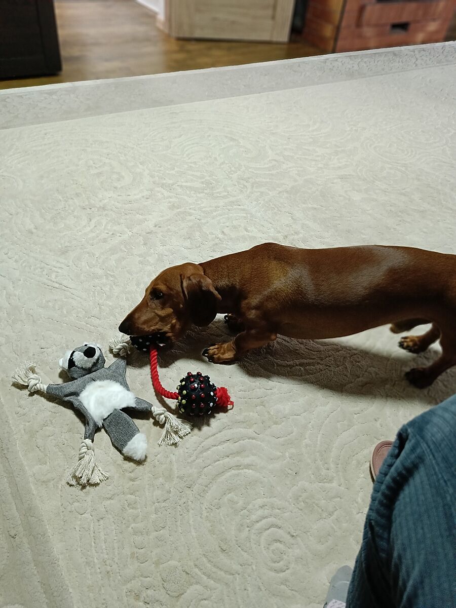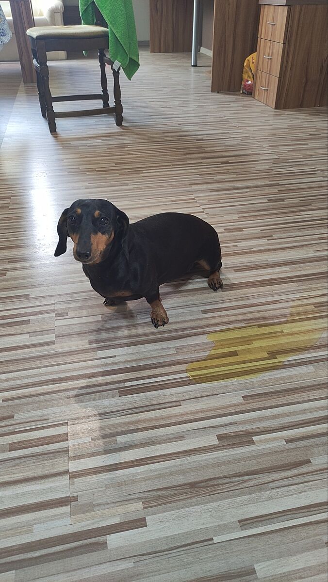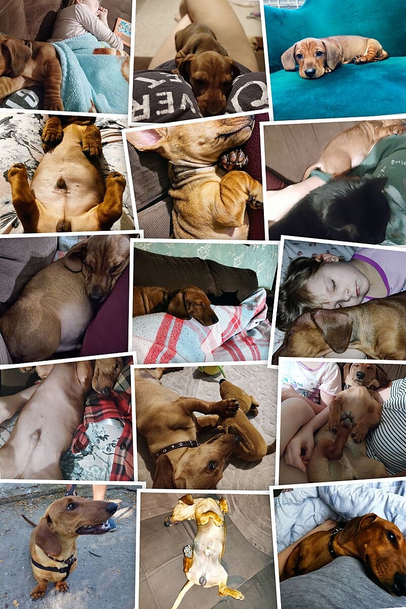 В мене є - це моя четверта собака. Був дворняга, лабрадор, спанієль, але такса зе Бест! Маленька, розумна, лагідна, не має шерсті, не воняє). Це мій хвостик, любить цілуватися, щоб його гладили, чухати пузико, обіймали. Собака-вода - ти його покладеш як тобі зручно і хочеться , і він так і буде лежати. Полюбляє їсти смаколики, типу оладки, налисники; варене м´ясо+ трохи рису, гречки, вівсянки. Є корм, іноді даю коли немає чого готового. Також даю сир домашній і молоко. Спить тільки в кроваті, в ногах під одіялом навіть в літку
