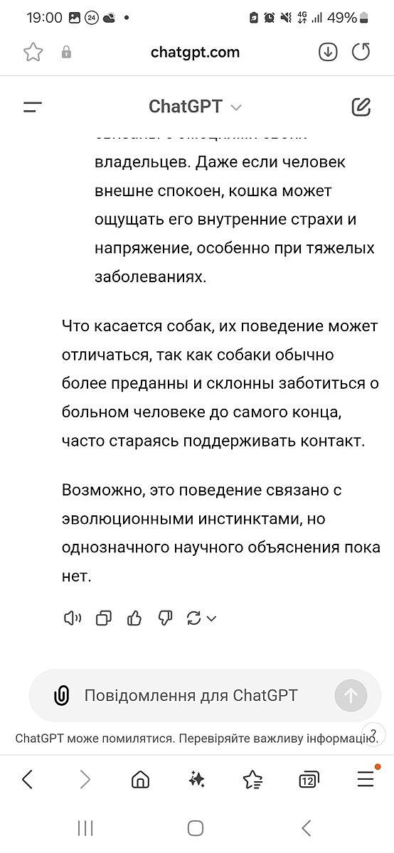 Мама лежала з інсультом, до останнього кішка британка біля неї в ногах... Тата забирали в лікарню оперувати виразку, улюбленець кіт як сів на підвіконня, так і сидів , не їв, не пив. Не дочекався одного дня, коли тата виписали - пішов на веселку... засумував.
