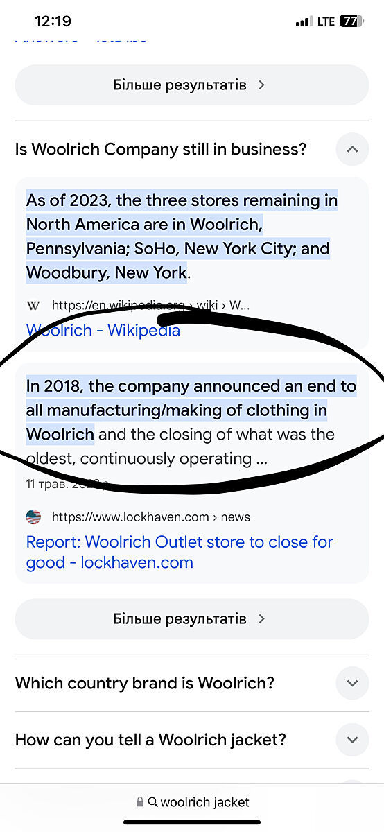 А как давно вы покупали вулрич? Потому что они давно прекратили производство, а я зашла на сайт вашего магазина, они там продают их вовсю