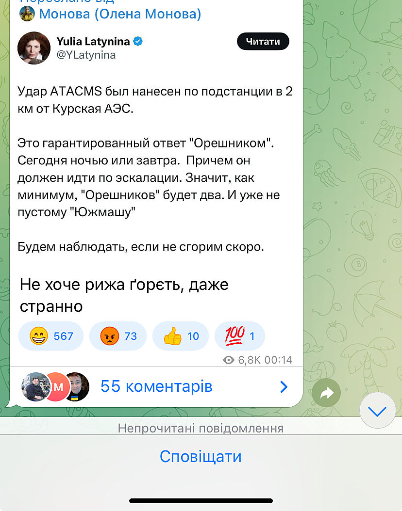 Не будуть вони лупить по Нато, принаймні зараз, все Україні дістанеться ...