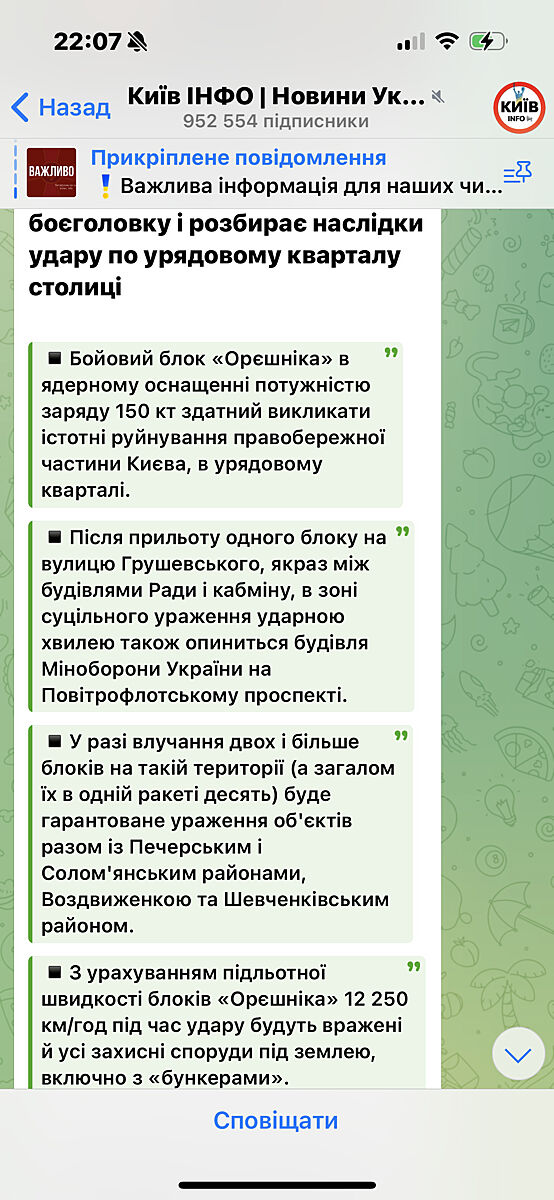 Поэтому даже если не прилетит Орешник, Искандеры, Кинжалы и прочее будут летать, как летали 3 года.