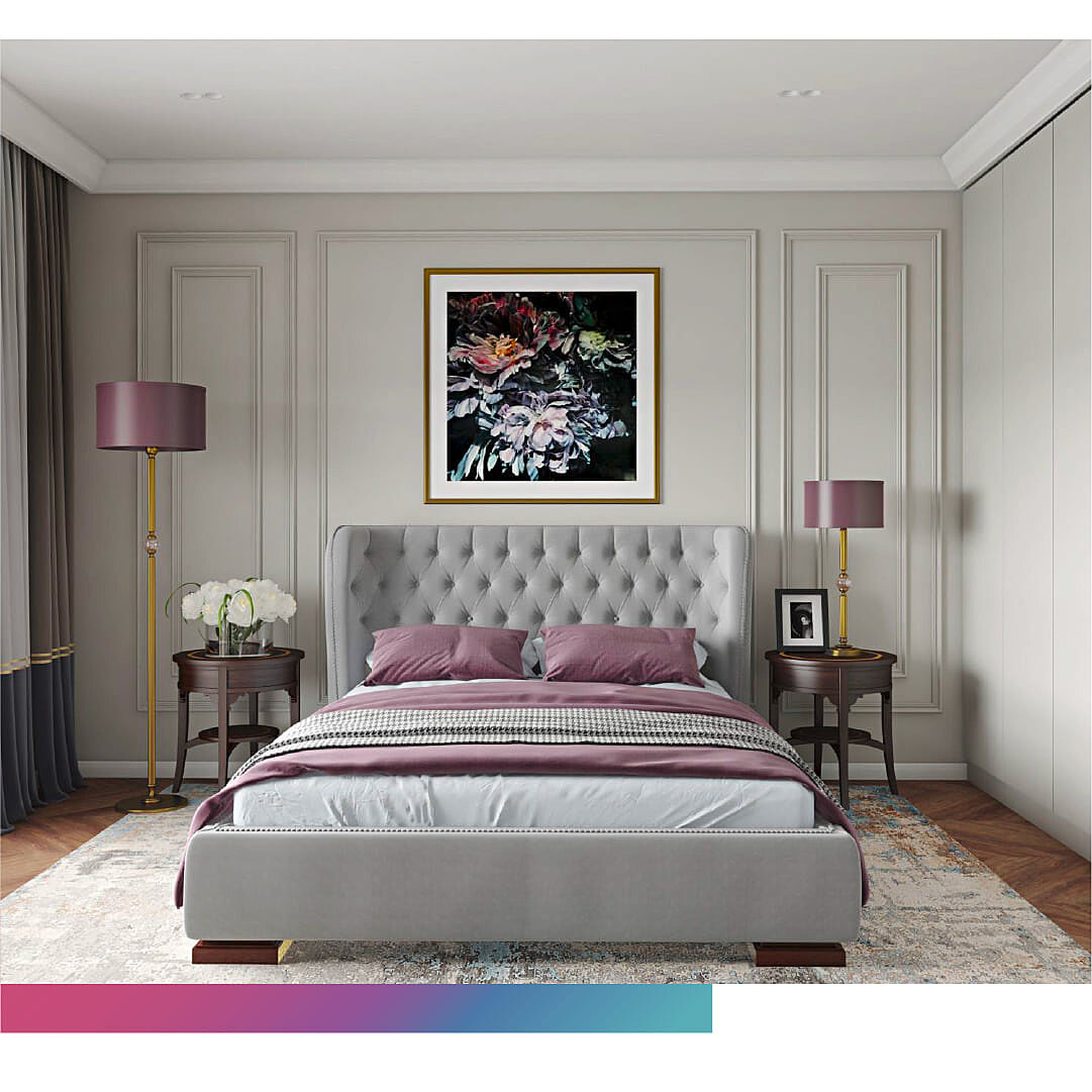 Якщо б я робила такий дизайн для себе, то стіну навпроти ліжка не заклеювала б шпалерами, а пофарбувала в основний колір.