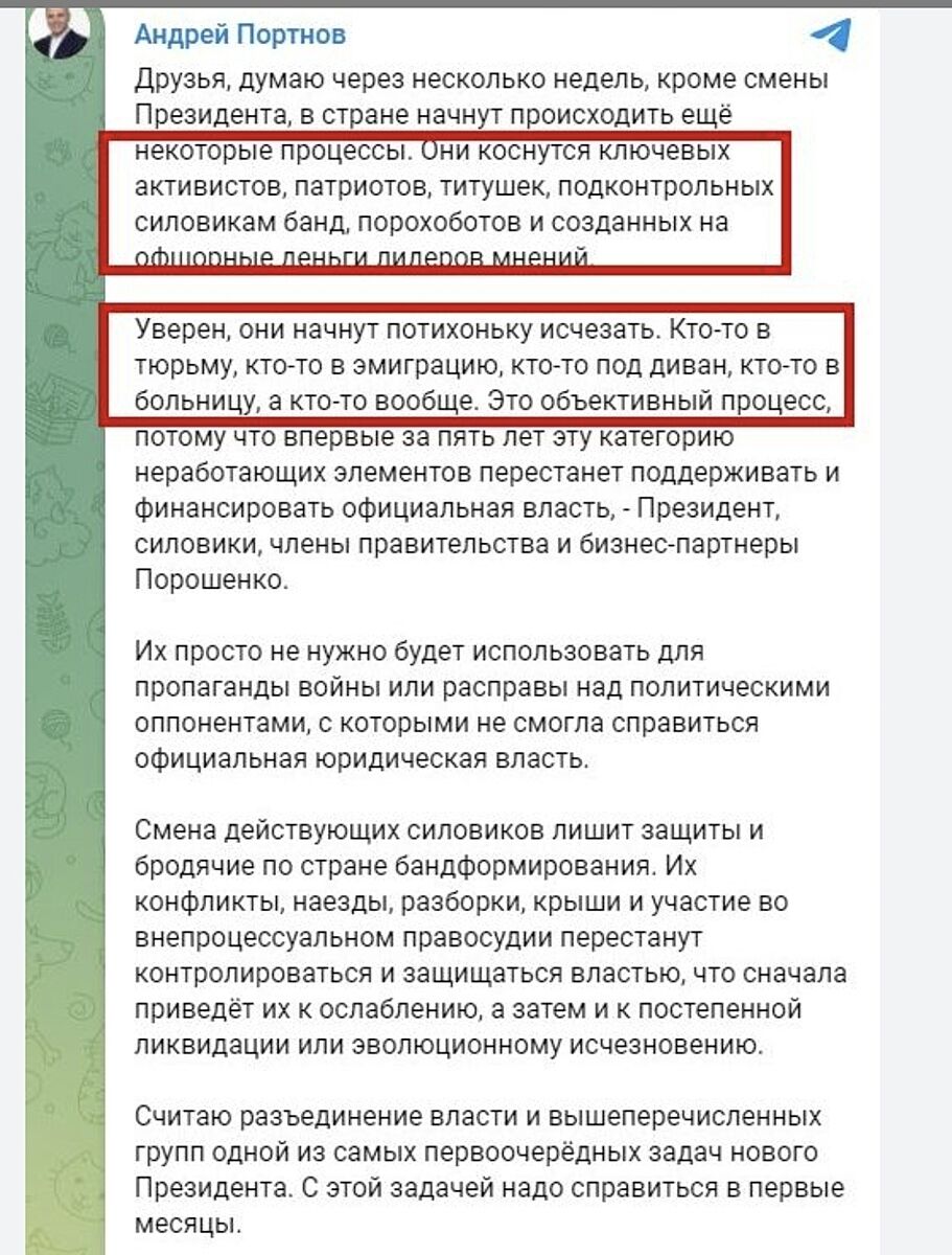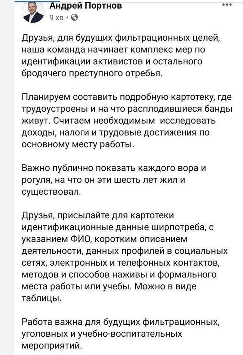 А потім в упор не помічав Портнова, який у відкриту закликав формувати розстріляьні списки із порохоботів і атошників.