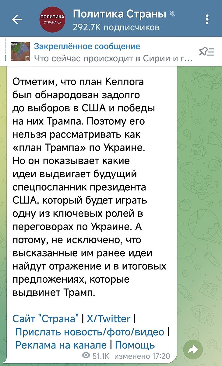 Это в апреле 2024 писали, вроде. Но фишка в том, что именно автора плана Трамп назначил ’советником’ или кем-то там по вопросу Украины.