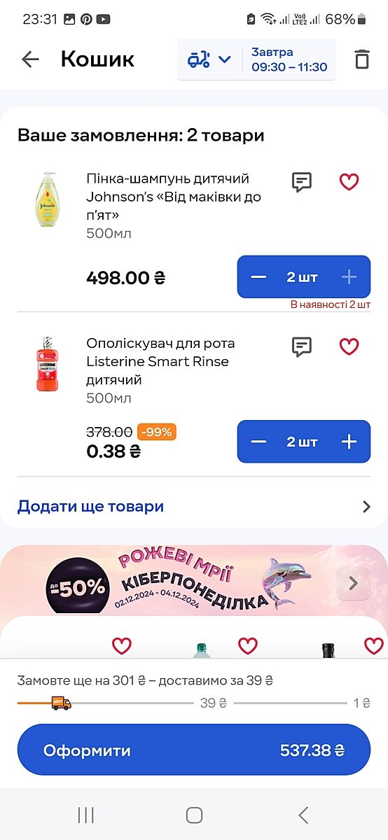 В вашем магазине действительно так считает именно эту позицию, по 59 грн да одну и 118 за две , хотя и пишут, что на другу 0.19, расслабьтесь, это акция без акции выходит или больше похоже на глюк. Я тоже не оформила.
