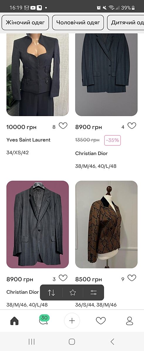 Я поставила фильтр с самых дорогих. По запросу пиджак винтаж. А не просто пиджак