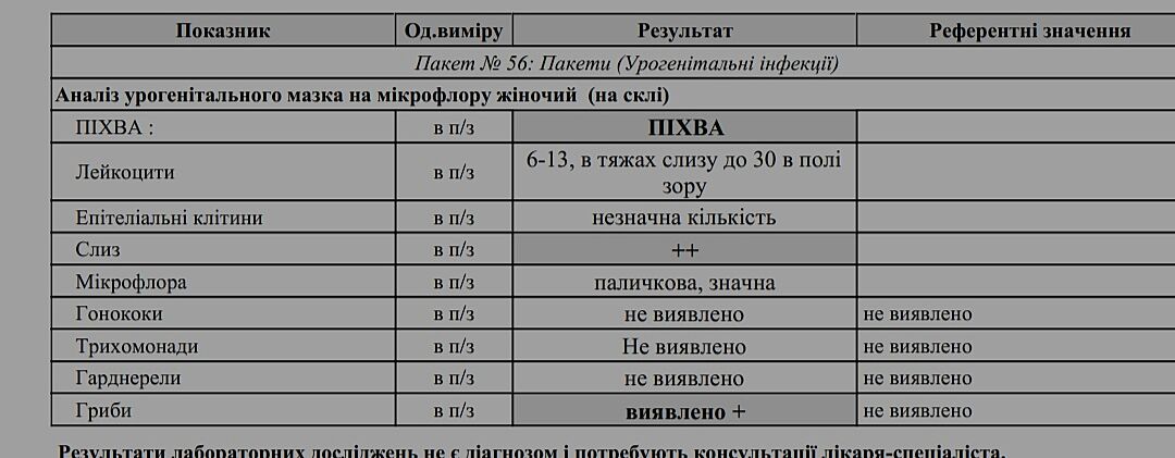 До лікаря на наступному тижні. По цих результатах я зрозуміла, що це молочниця, але її симптомів немає, тільки живіт трохи болить внизу. Хто розбирається, підкажіть, що по цих результатах можна сказати?