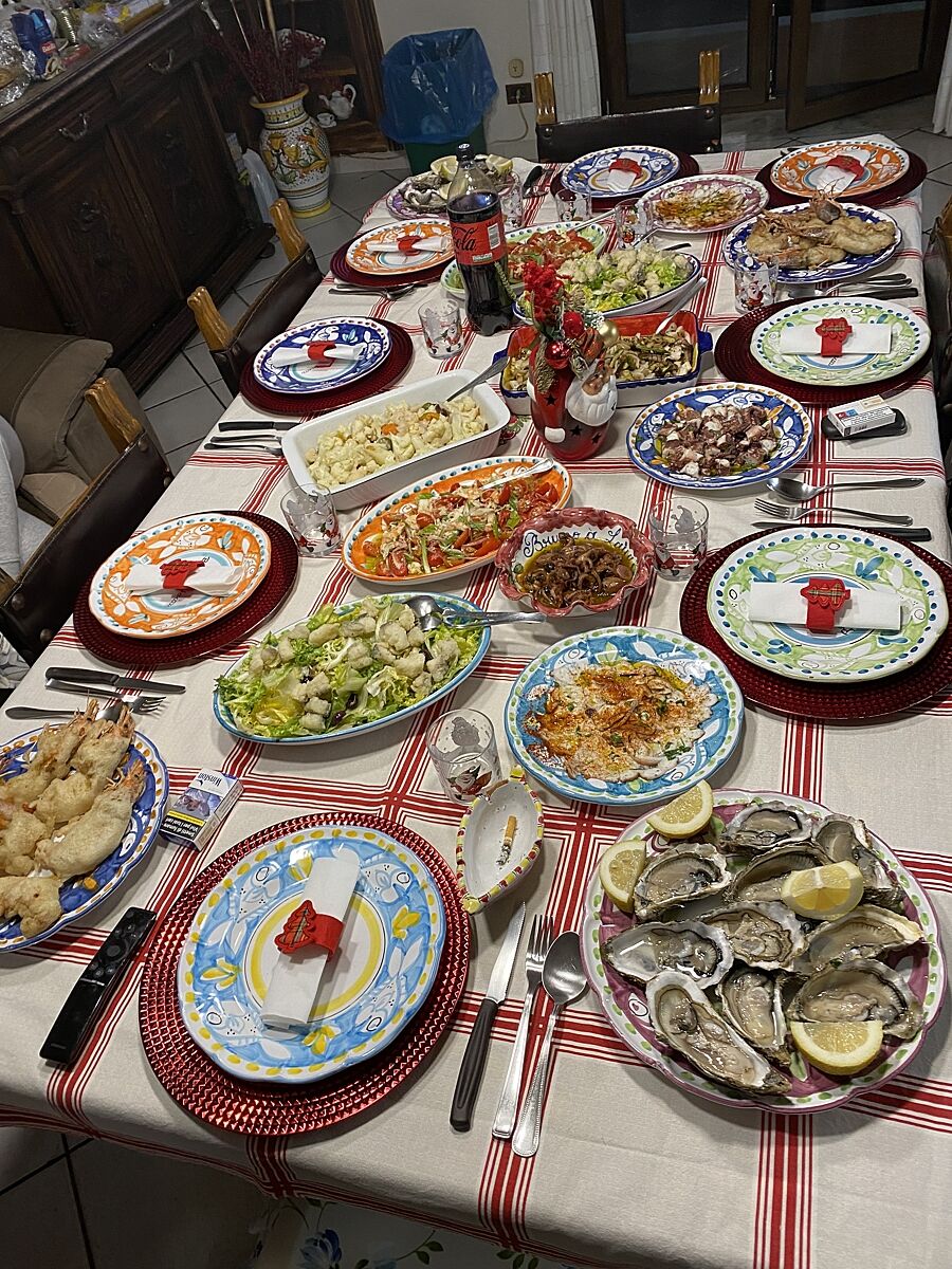 У меня бедный стол всегда) Рыба, пару салатов, нечем хвастаться))
