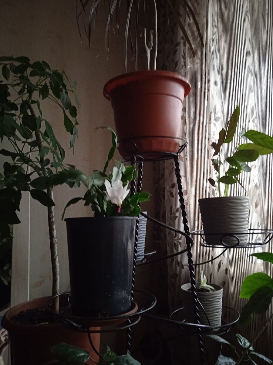 Рождественник расцвел. Собирается ещё один и каланхое. Но они на другом подоконнике красивее зеленее