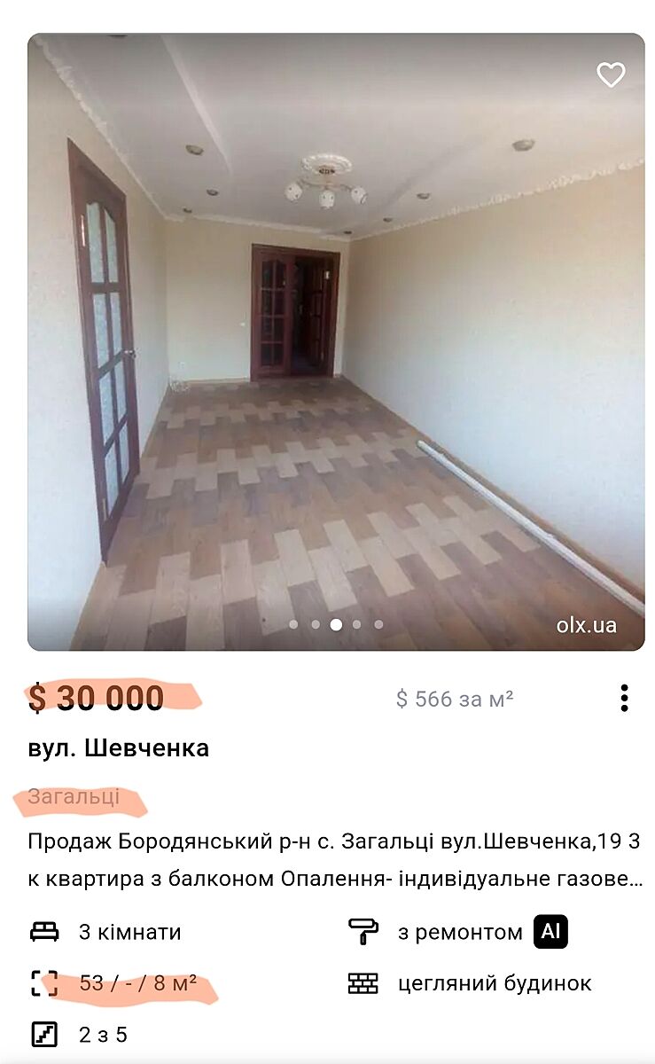 Загальці - 30 тис 53 кв, в нормальному стані, на відміну від вашої