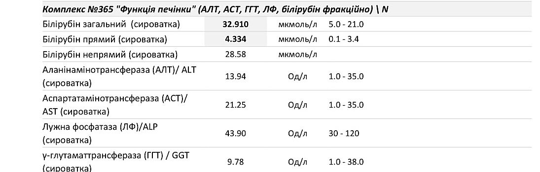 Нічого не турбує, здавала профілактично. Жовчний видалений. До лікаря вже записалась, турбує оцей підвищений білірубін