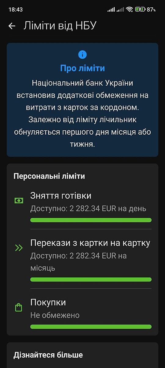Лимиты для наших валютных карт не такие, как в грн. Карта Приват. Скрин выше. Вывозили в Италию.