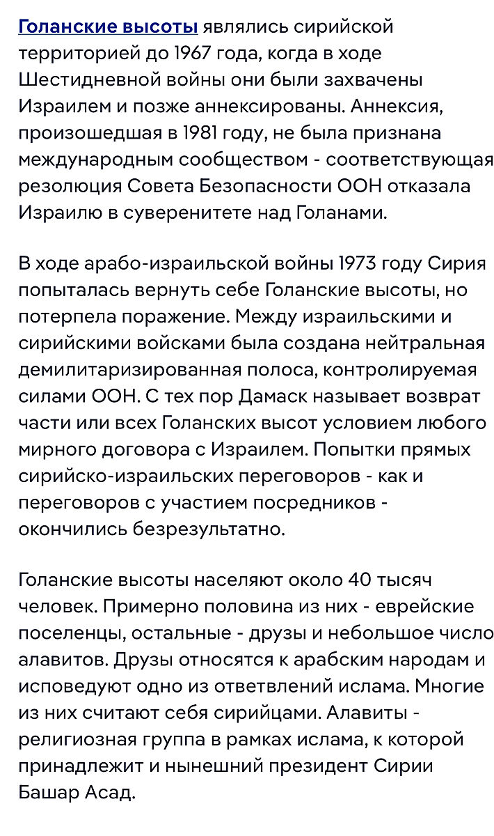 По факту він і так утримує Голанські висоти 50+ років, але ніхто з сирійської влади не визнає офіційну відмову від цієї території