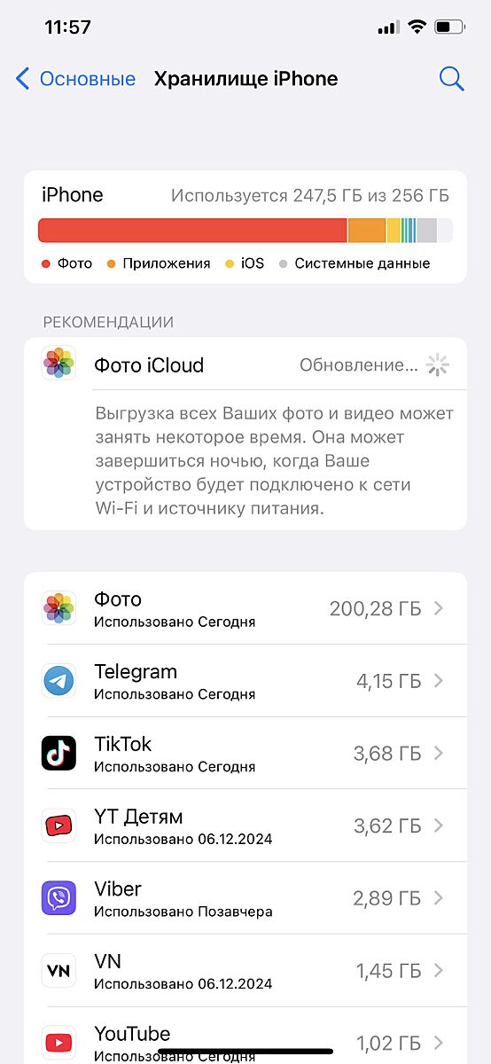Подскажите мне, что я делаю не так. Купила 200 Гбит в ICloud и всё равно нет места на телефоне.