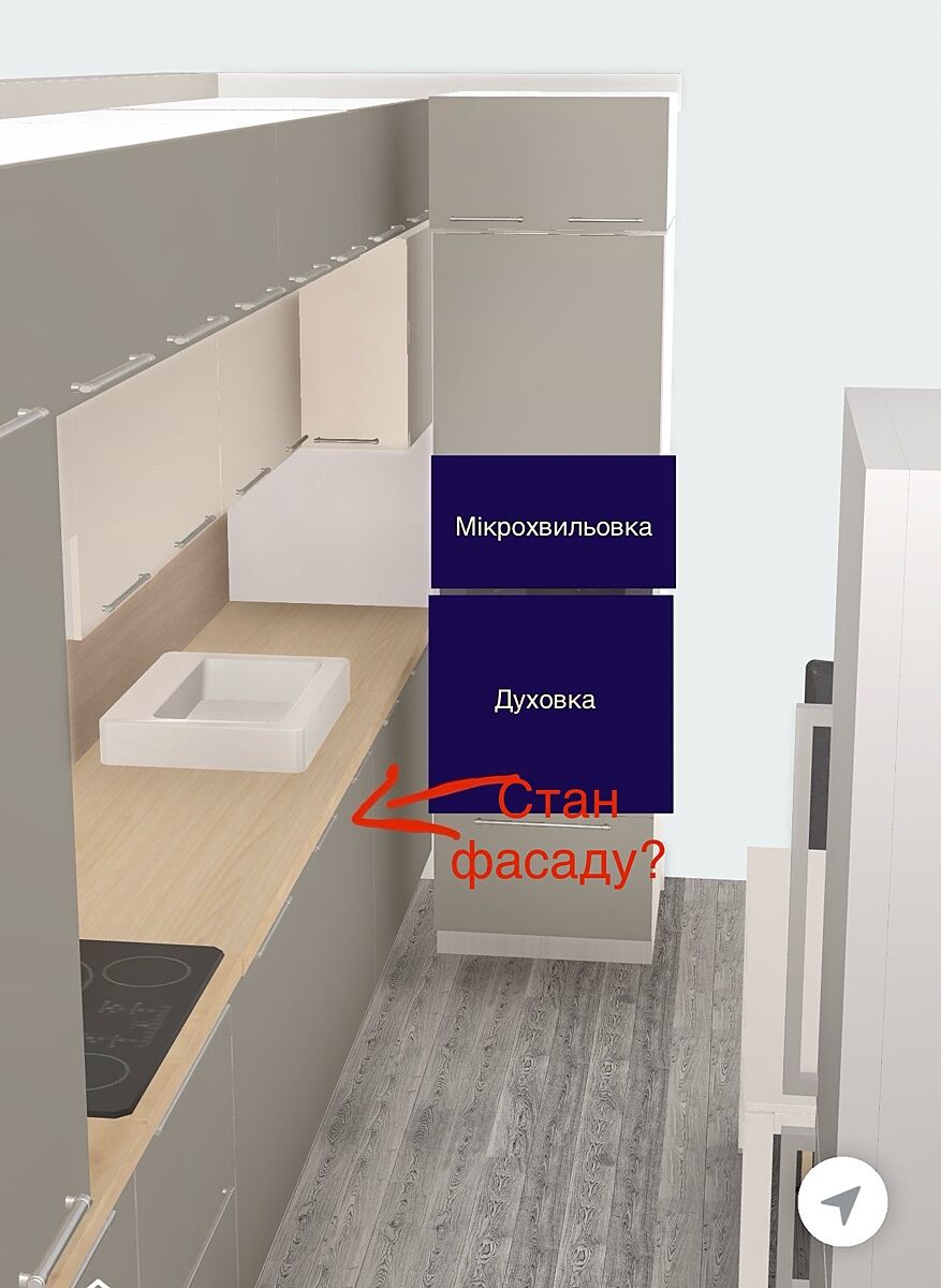 У кого таке розміщення духовки в пеналі в кутку і поруч мийка? В мене 2 питання.