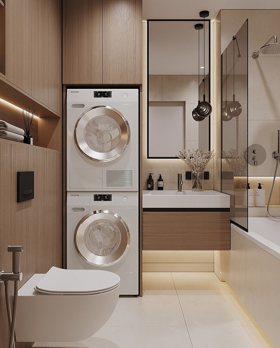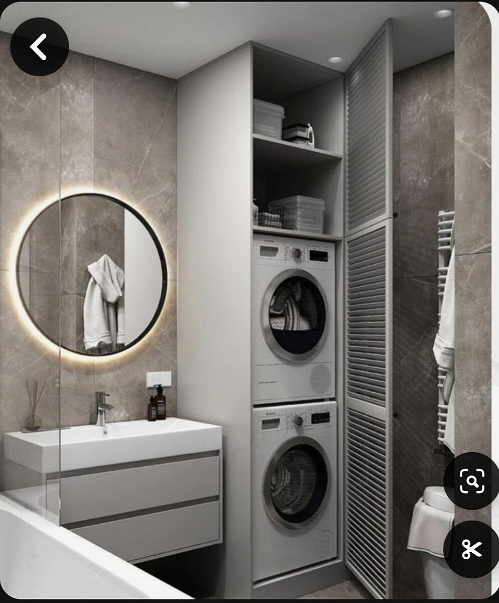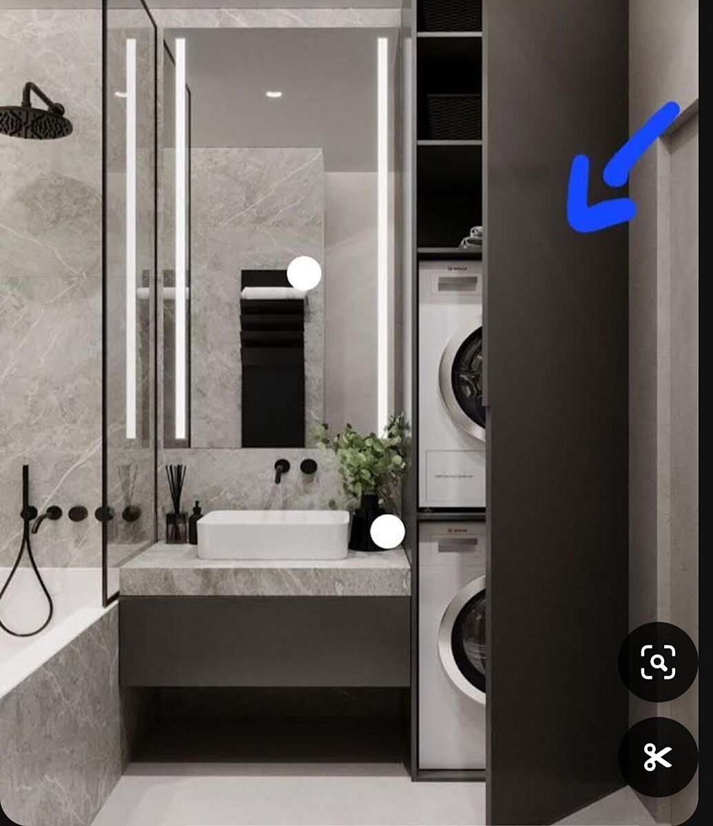 Я бы не делала шкаф с дверям , стиралка должна быть помтоянно открытой, так же, как и лоток для порошка. Лично я после каждой стирки лоток вынимаю , мою и ставлю на столешницу в ванной, чтобы высох. И никакая плесень никогда не заведётся. Зазоры по бокам стиралки/ сушки должны быть обязательно, это правило.