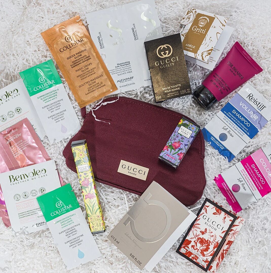 До чого тут пробнички? Там дві мініатюри парфумів, тревел версія та косметичка. Брокард до кожного замовлення дає безкоштовно взірці Навіть до боксу були парфуми 2 шт.та знов карта на -30.