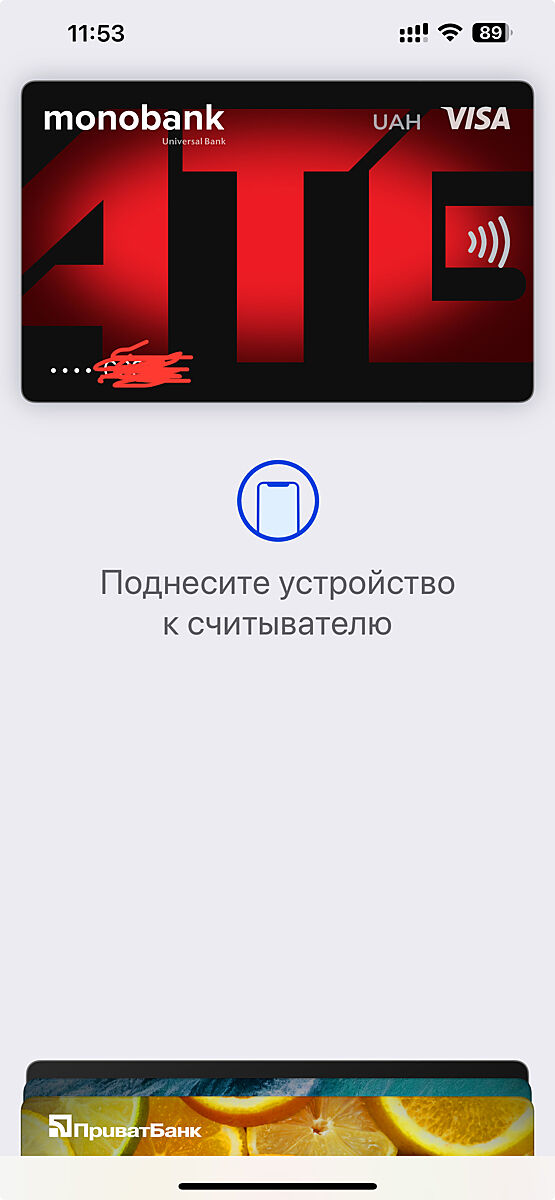 Расплачиваюсь физической картой моно банка ( не телефоном ).