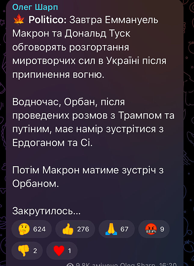 Там Макрон і Туск зі своїми промінчиками пуйлу про миротворців туди ж .