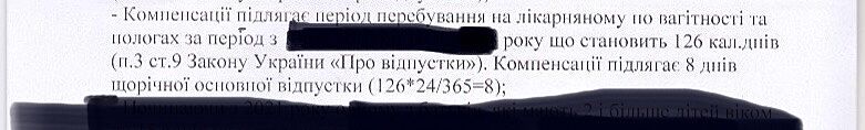 Я передивилась, за що саме компенсували мені. У мене там ще була компенсація за невикористану відпустку особам, які мають двох дітей до 15 років.