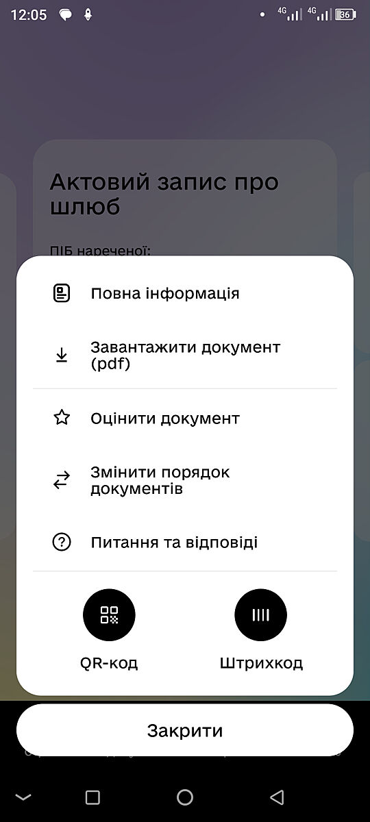 Там указана інфо о браке и разводе, снизу qr -код из базы данных.
