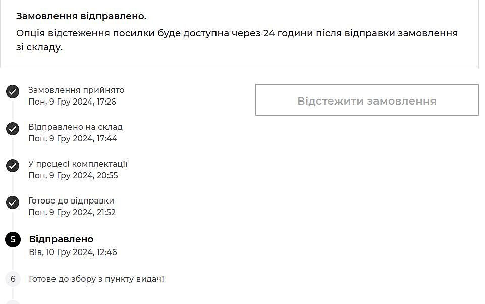 В мене замовлення зроблено та сплачено 5 грудня. Теж на сайті висить, що відправлено та й все, і ніяк не відслідковується