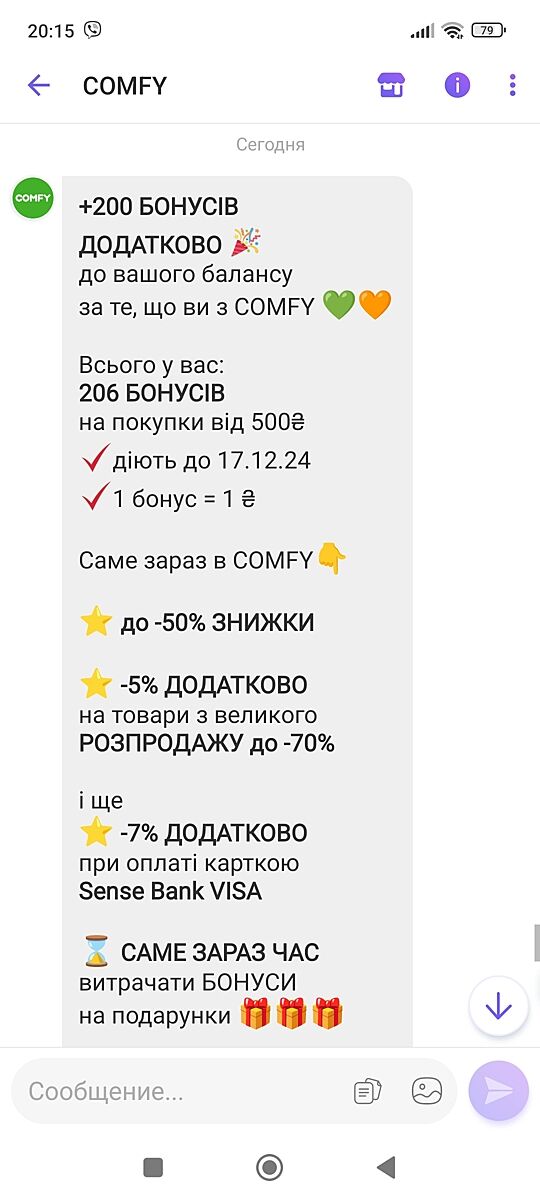 Всем пришло 200 бонусов в Комфи до 17 грудня??