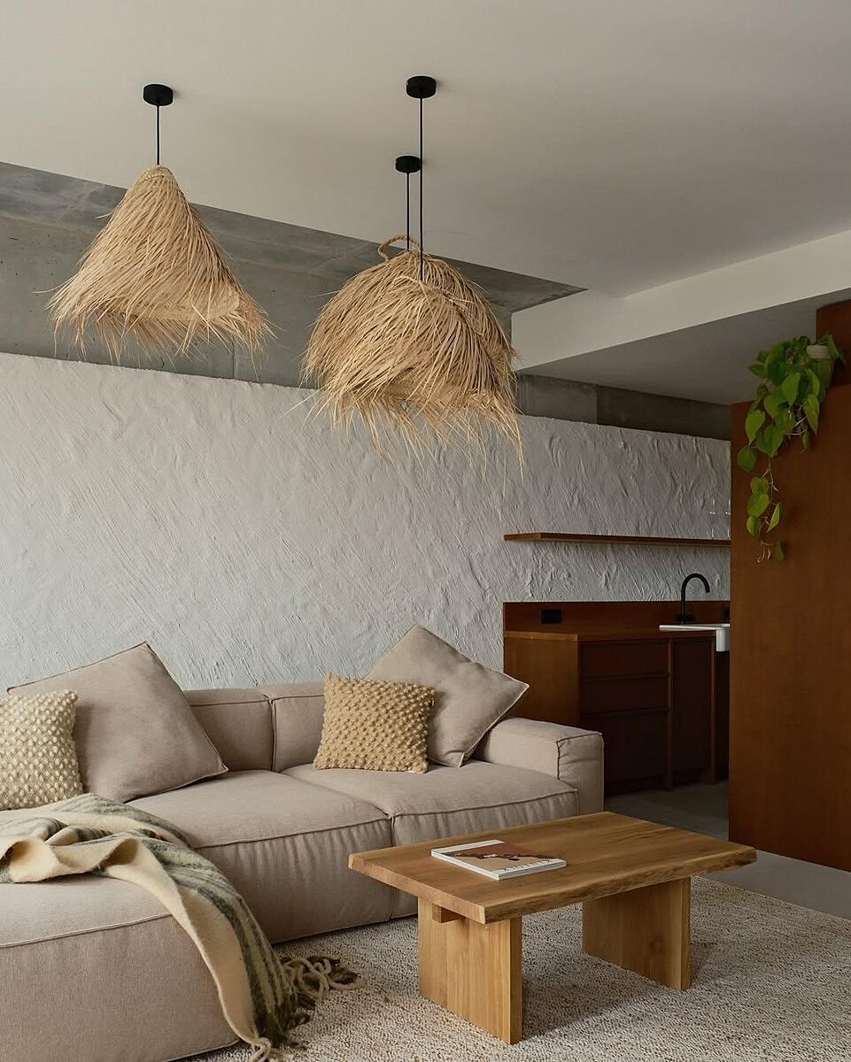 Если это апартаменты, то это - квартира холостяка, где смешали элементы лофта, балийской виллы и небоскребной неоклассики.