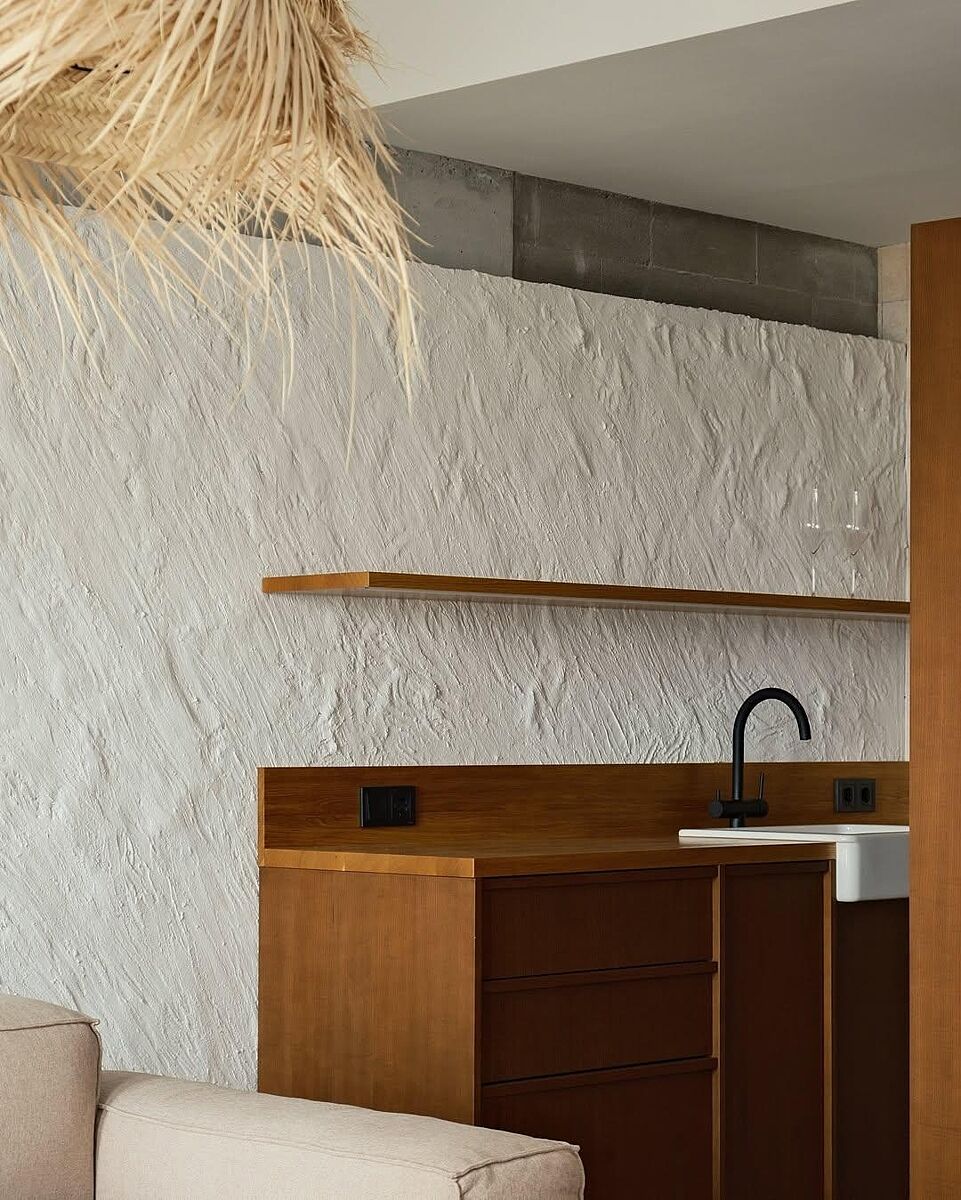 Очень непрактичный ремонт. Постоянно везде пыль будет, даже на этих нервных стенах. И выглядит как съемное жилье на короткий срок.