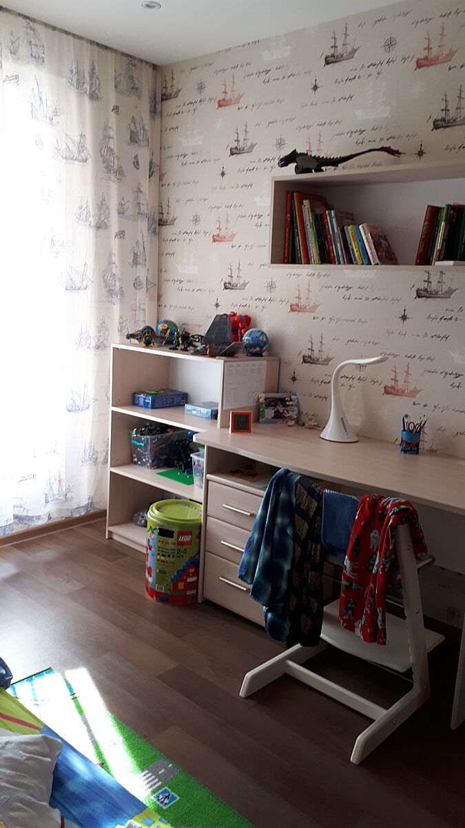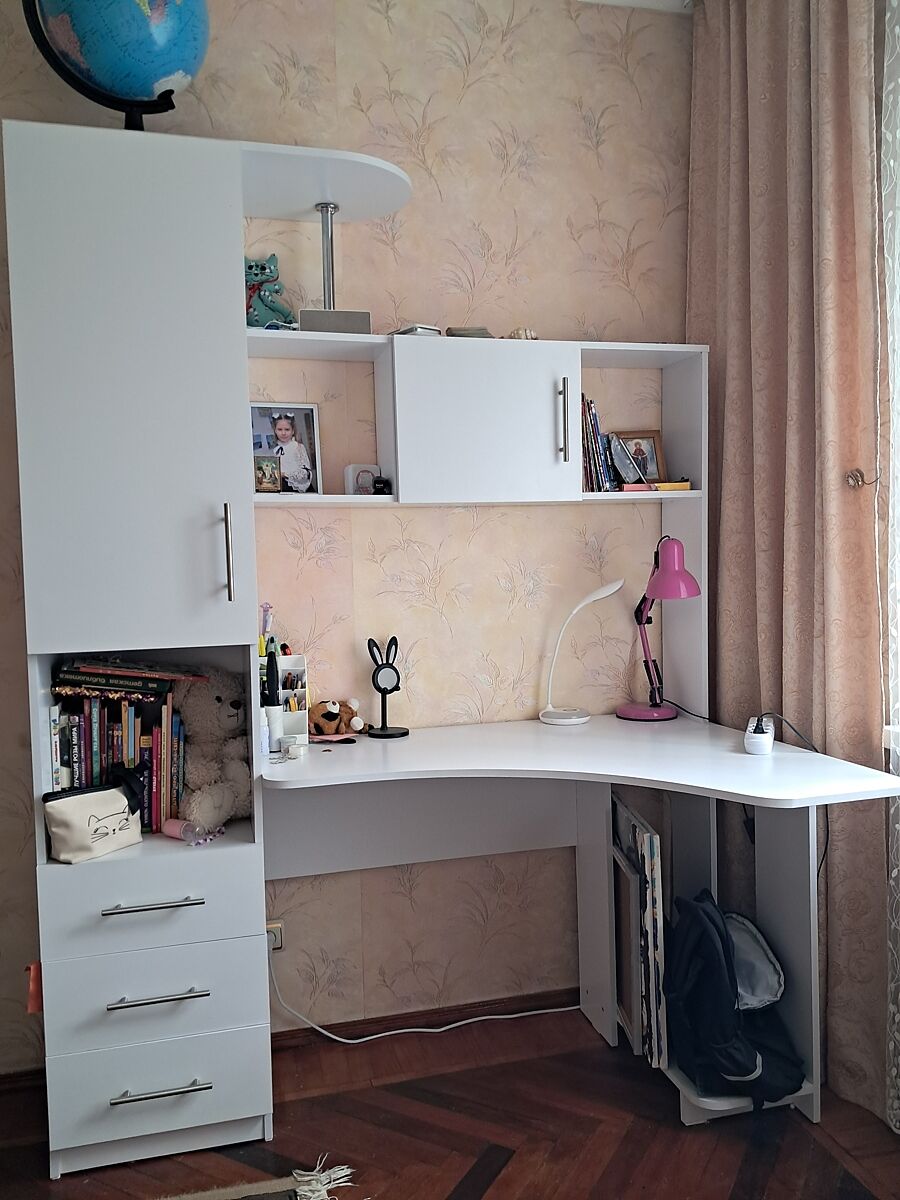 К первому классу купили большую парту, комод к ней и узкий шкаф с открытыми полками. До 7-го класса хватило, и хватило б до конца школы, но пришлось уехать.