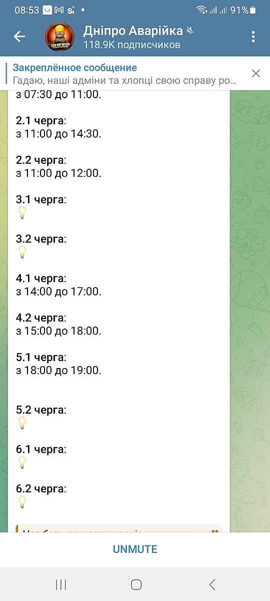 Днепр, АНД район, 3 группа - вначале было 2 раза по 2,5-4 часа (обычно где-то по 3 часа), недавно начали и ночью отключать, но в основном утром/днем и вечером.