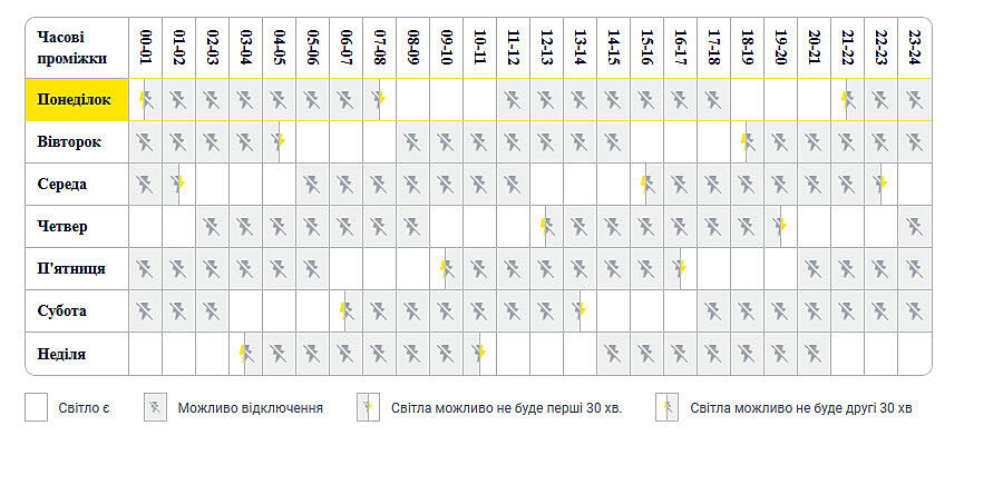 Это не график отключений. Зайдите на официальный канал дтэк или свой городской сайт дтэк, и посмотрите, какая у вас сейчас группа, подгруппа и графики.