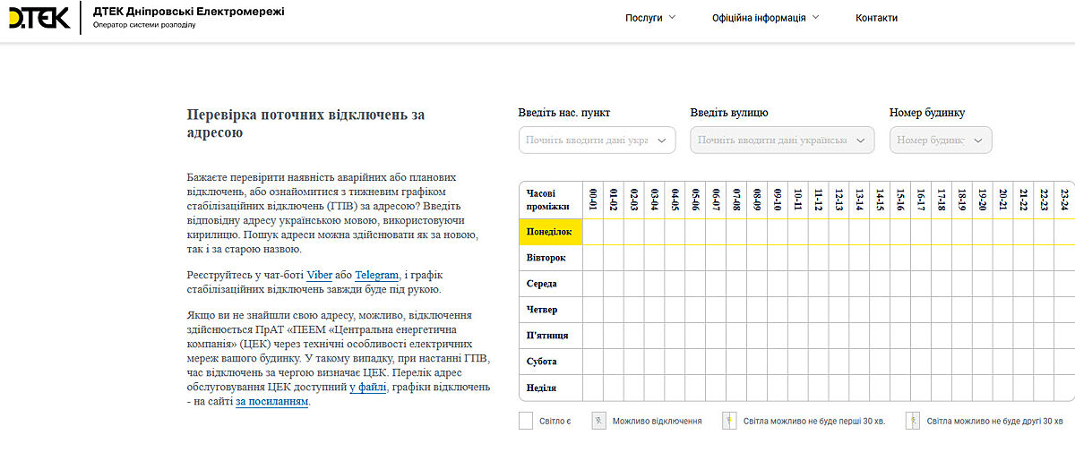 так я на сайте ДТЭК смотрела, ввела свою улицу и дом.