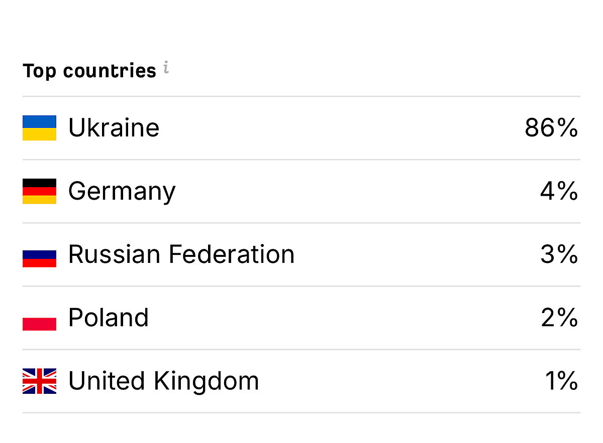 Какая-то странная статистика. Столько наших девочек в Польше сейчас и Германии и такие низкие проценты ? Да и в 3% из рашки не верю. Намного больше читает. И остальные цифры странные. Какие-то миллионы и сотни тысяч. Ничего не понятно