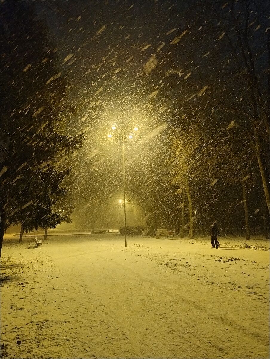 Была на улице. Снег жуткий, автор. От него слезятся глаза и он очень...странный, не падает, а кружит вихрем, как рой пчел, кружит кружит и уносится дальше, часть падает на землю.