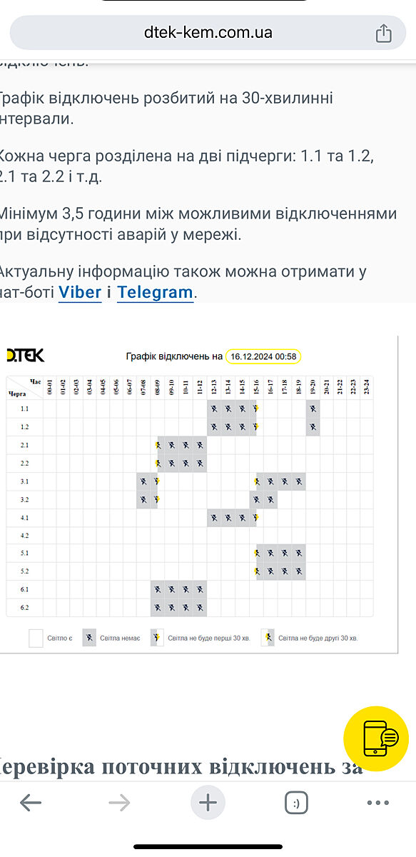 Там можливі відключення майже цілий день. Тільки 3 години є світло