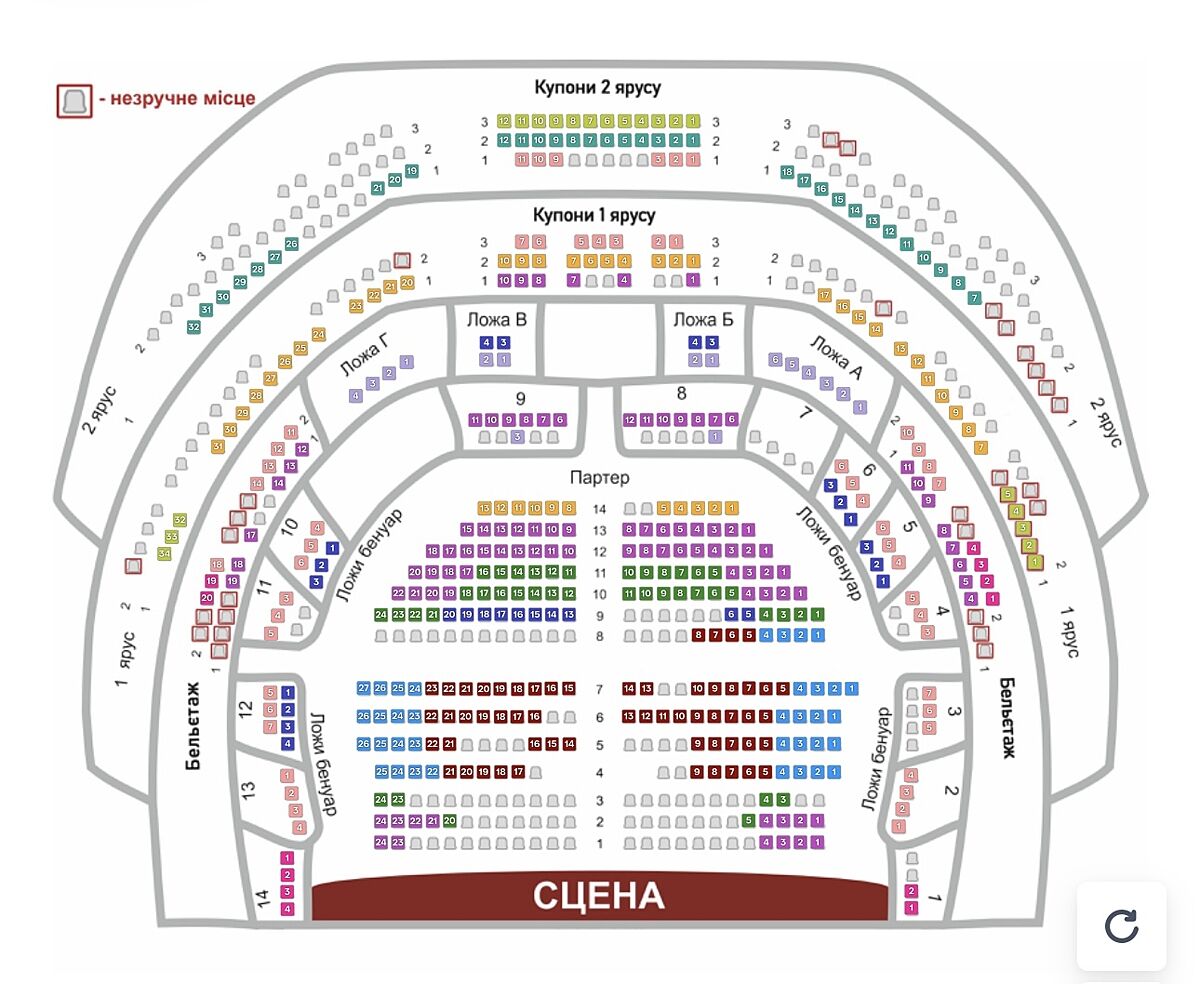 А мені краще ложа трохи збоку, ніж партер. Взагалі партер не люблю. З моїм щастям переді мною вічно або мужик під два метри, або панянка з якимсь кандибобером на півсцени