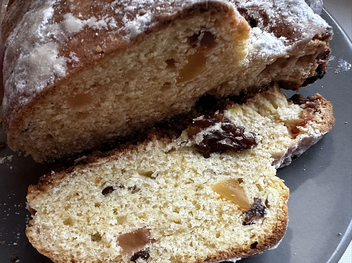 Думаю, вийде коржик плаский. В штолені забагато масла і вологи(сухофрукти з ромом) щоб звичайне борошно то все підняло гарно