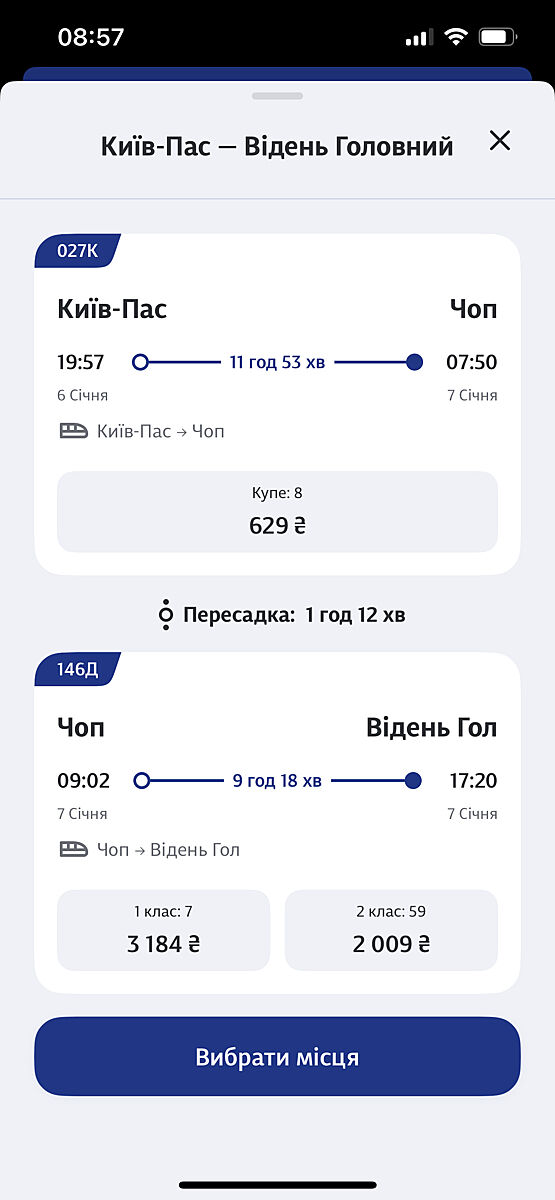 Поясніть, будь ласка, про прямий потяг Київ - Відень