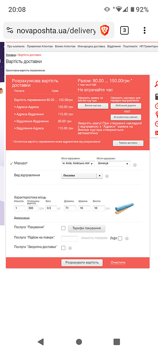 Так-то можете отправить коробку 65х65х65 и весом 1 кг за 45 грн. И посчитайте на новой, сколько это будет