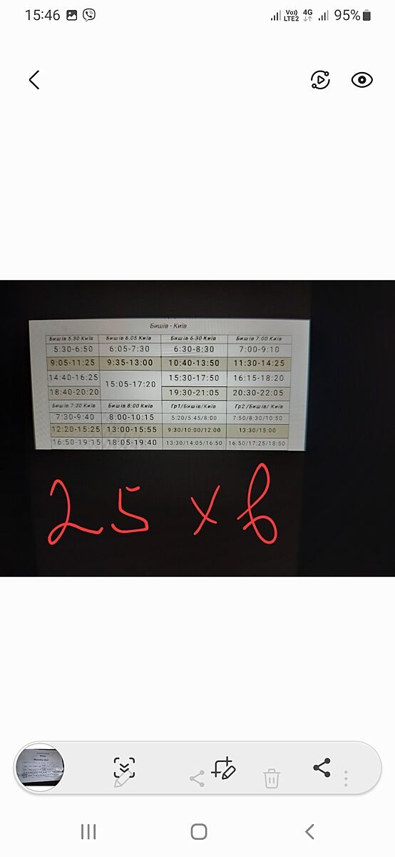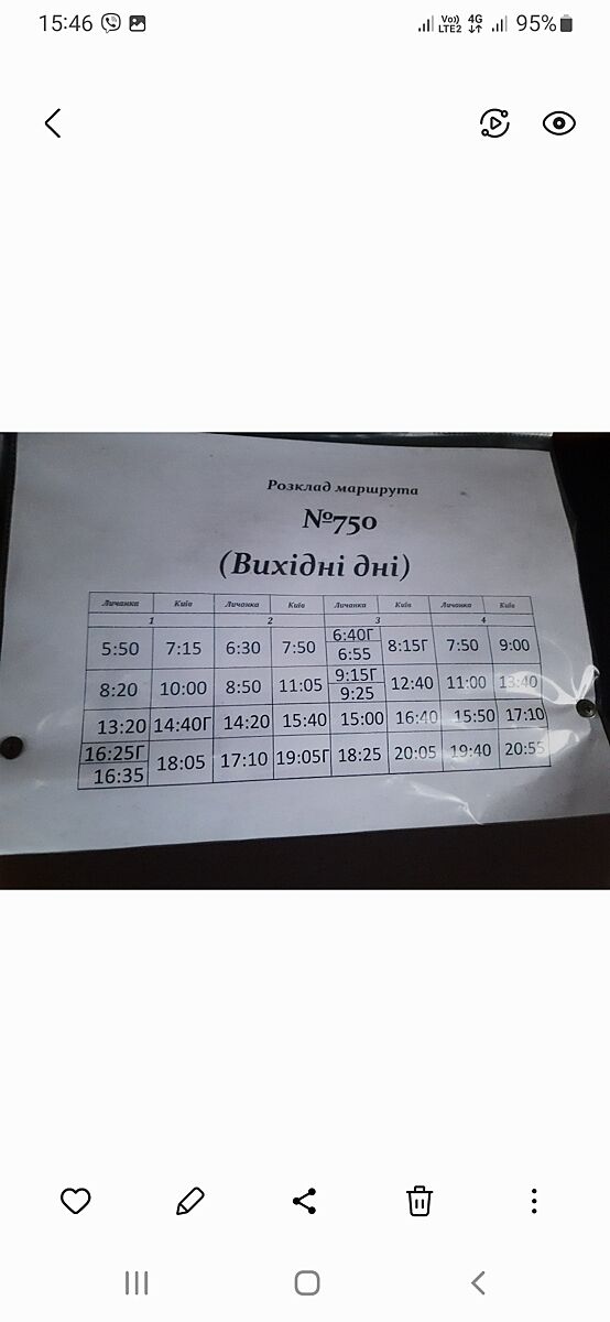 Я теж сфоткала в мапшрутці на Лмчанку та у жіночки з тел на Бишів. Але з Бишова до Шпитьок плюс 25хвилин - жіночка сказала.