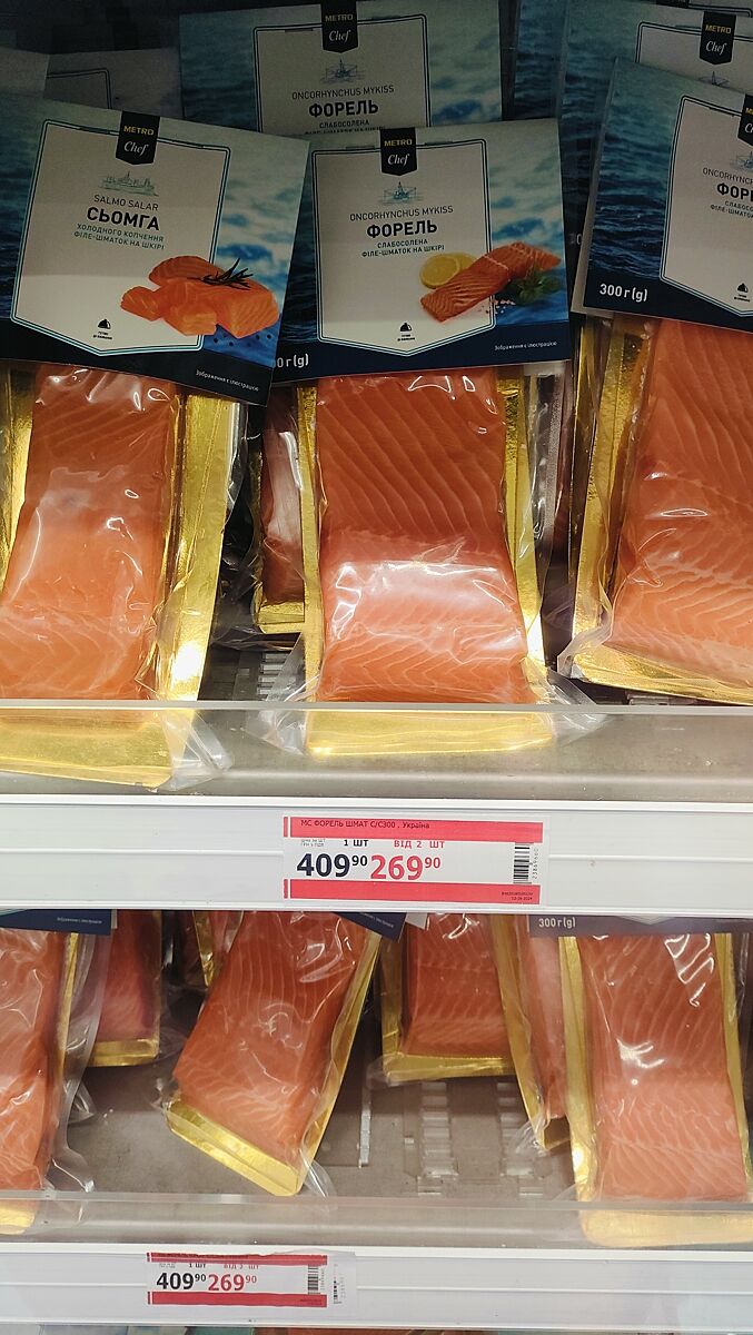 Я в інсті купила по 250 грн/кг слайси (лосось чи форель, вже не пам´ятаю). Непогано, хоч і тонкі слайси.