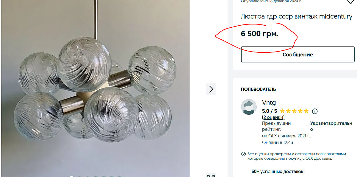 у автора современный лаконичный интерьер, зачем ему это странное чудо из ГДР за 6500, к которому к тому же невозможно будет найти запасной плафон