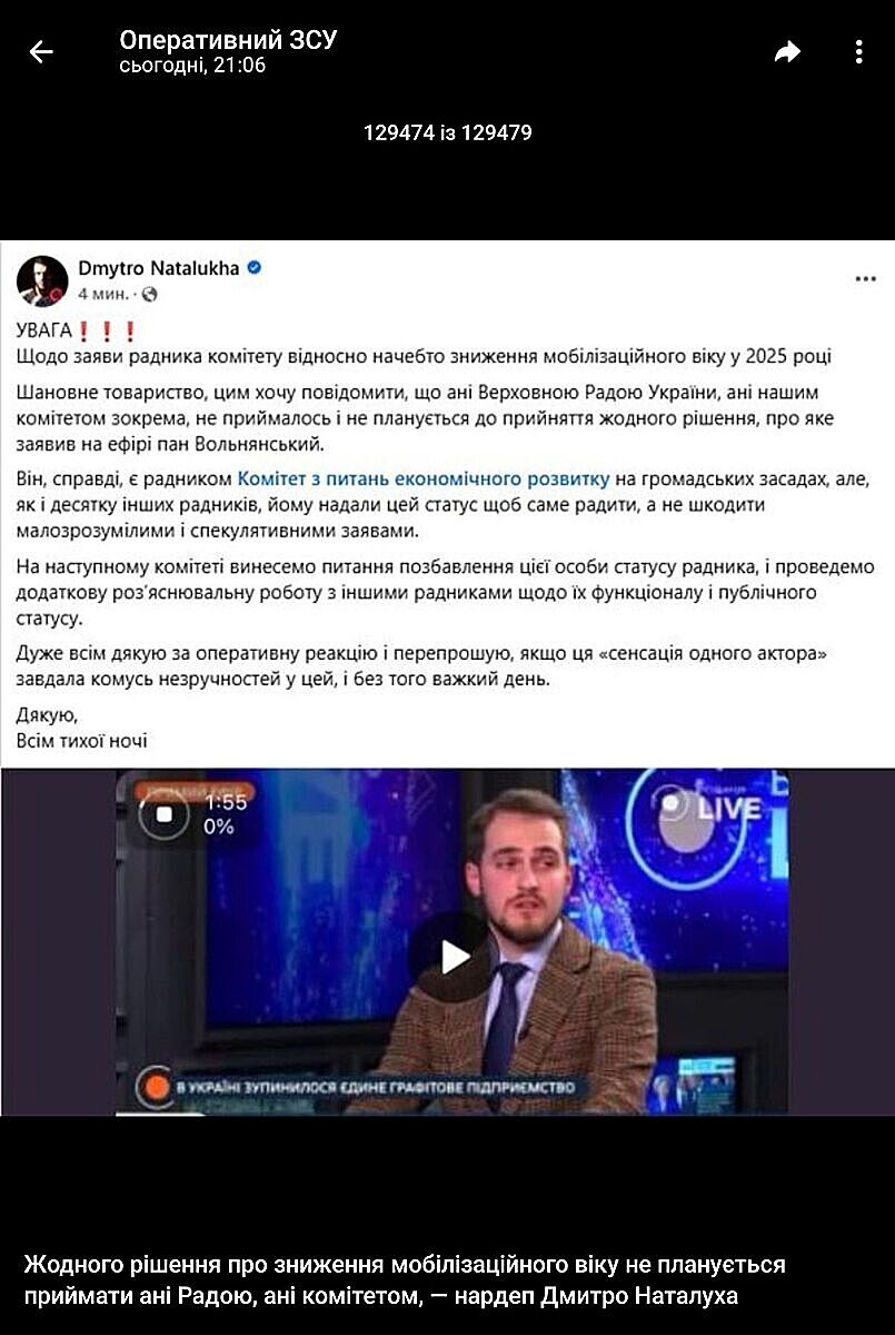 ’Європейські та американські партнери з 2022 року закликають українську адміністрацію знизити мобілізаційний вік до 18 років. Коли у мене запитують про те, чи знизиться він - звісно знизиться. Я думаю наступного року в перших місяцях - січні, лютому або березні буде затверджено таке рішення’, - сказав він.