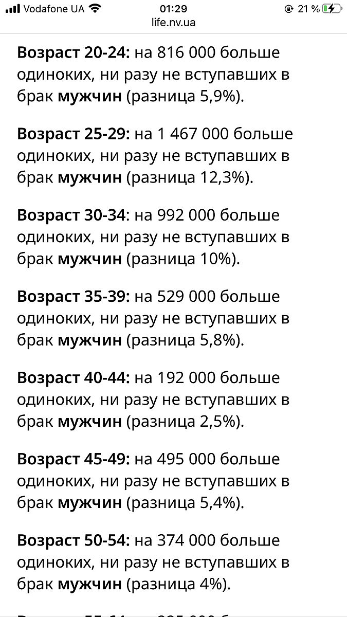 Да вы можете считать как угодно, это всего лиши ваше мнение и ваше видение ситуации, ваш опыт. Статистика вещь упертая и точная и все четко отображает. Я все написала выше и про соотношение одиноких мужчин и женщин и многое другое. Вам что-то не понравилось, это не вписывается в вашу картину мира? Ну так это не мои проблемы. Вы придумали себе свою реальность, вам так легче, пожалуйста живите как считаете нужным. Только не навязывайте ее другим.