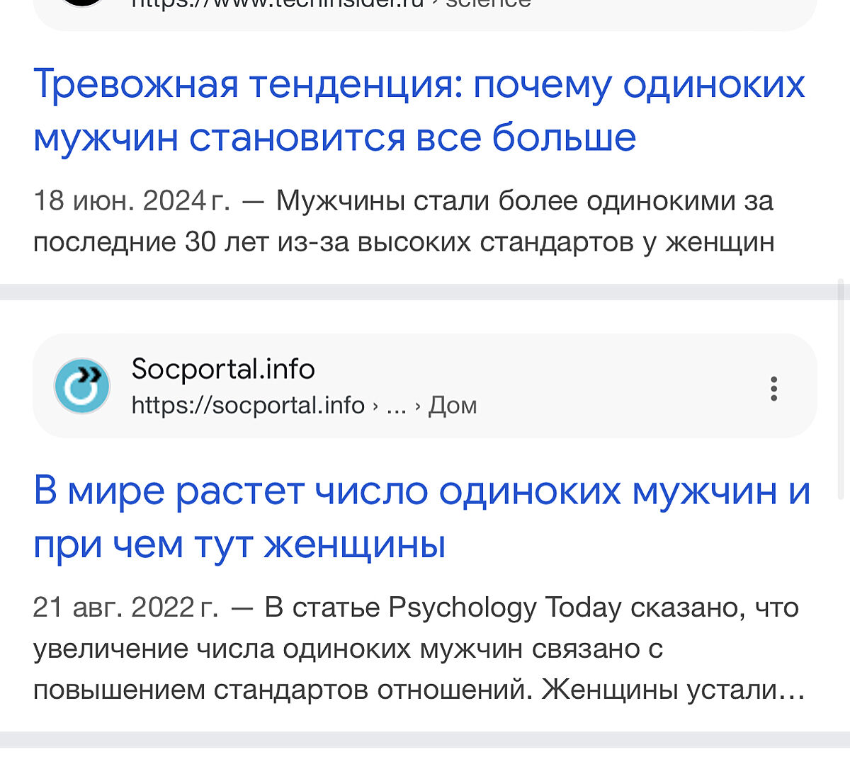 Послушайте, мной манипулировать и брать меня на дешевый понт очень сложно, не на ту напали. Вы тут кучу информации писали и про эпидемию мужского одиночества в мире и прочий бред, пруфы будут? Или только необоснованные теории и личный взгляд на вещи.