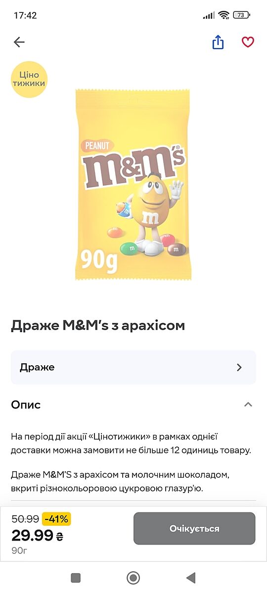 В Сильпо M&M 90грамм 30грн