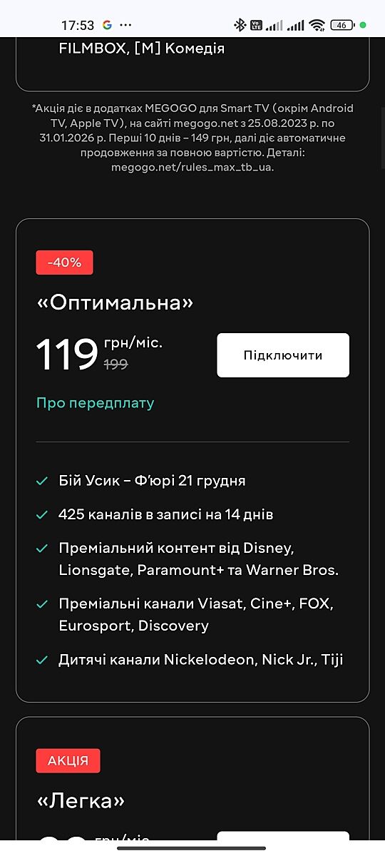 Честно, я не знаю. У меня мегого нет на постоянке. Я позавчера просто купила пакет оптимальный, в конце месяца оплату отключу. Трансляция идёт.