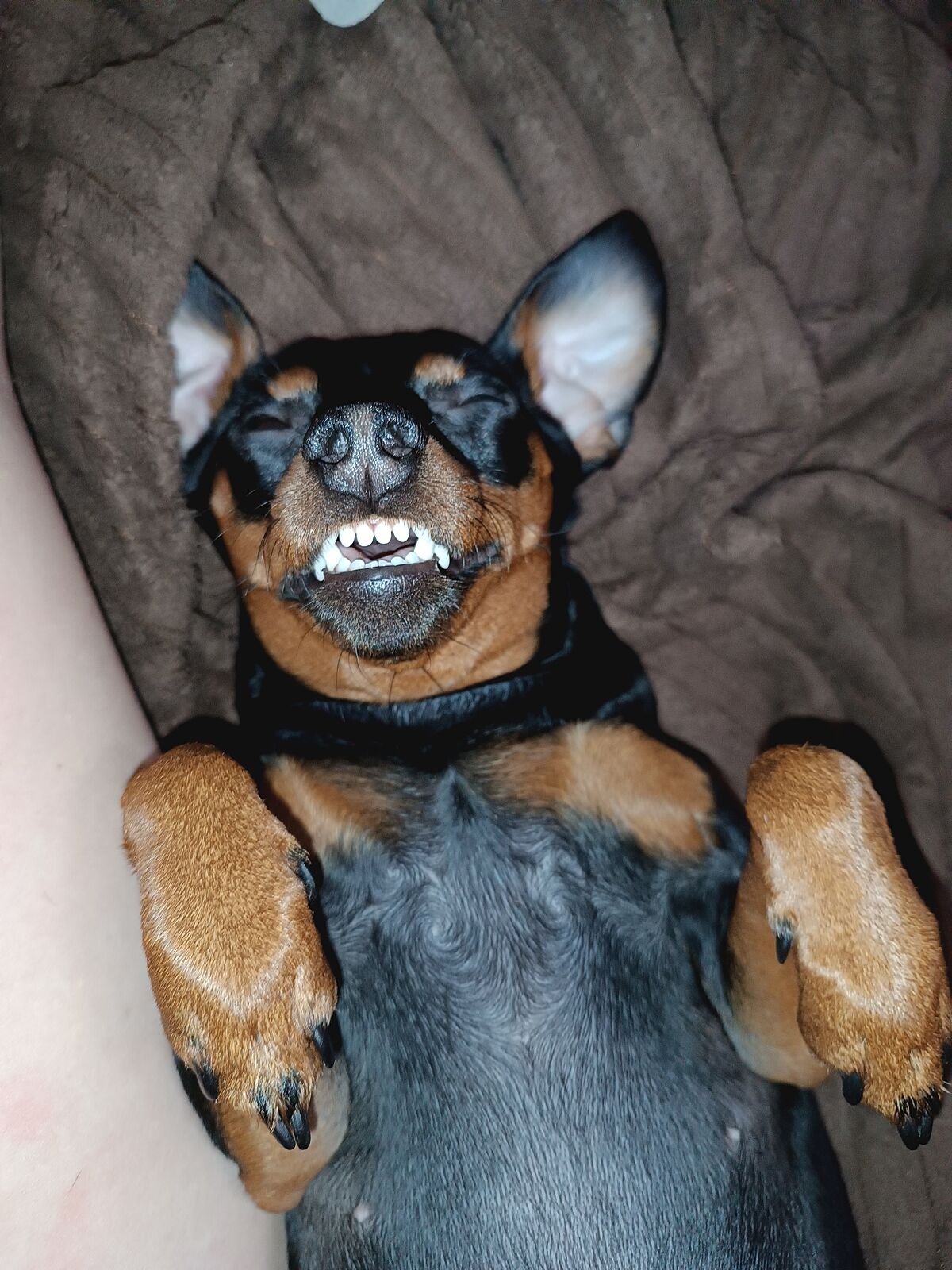 А ще почав ричати, раніше так не робив і взагалі не думали, що так уміє))) коли він відпочиває, а малеча приходить і гучно балакає, скаче біля нього, то починає ричати, типу вспокойтесь вже🤣 виглядає це все смішно, бо він у нас міні, важить 2 кг, з віком став таким серйозним і ворчливим старикашкою.
